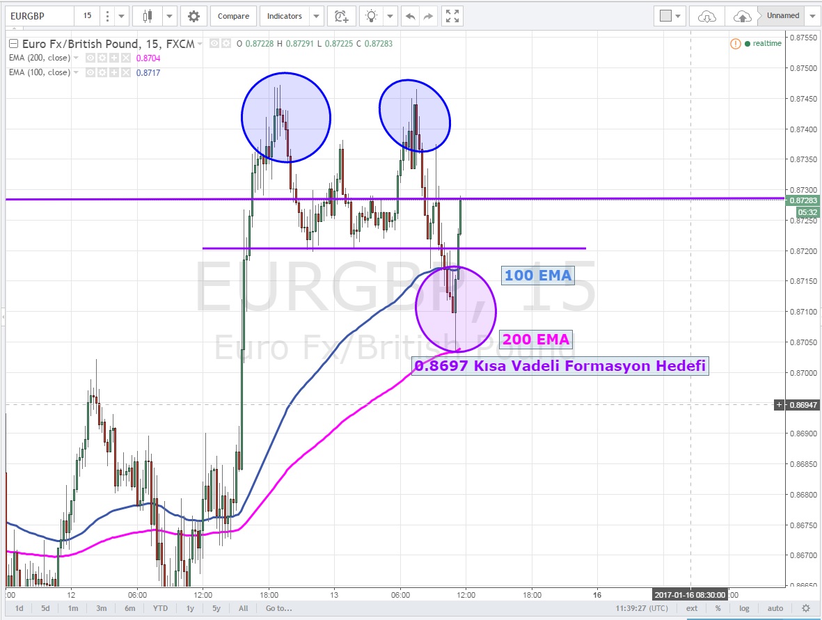 0.8703 seviyesinde 200 EMA 'dan tepki veren paritede günlük kapanış orta vadeli hareketler için önemini korumaya devam edecek