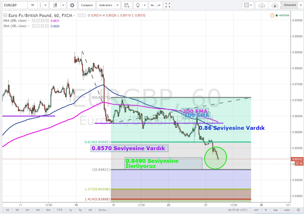 EURGBP - 0.8490 seviyesine ilerliyoruz .Parite an itibari ile 0.8510 'da