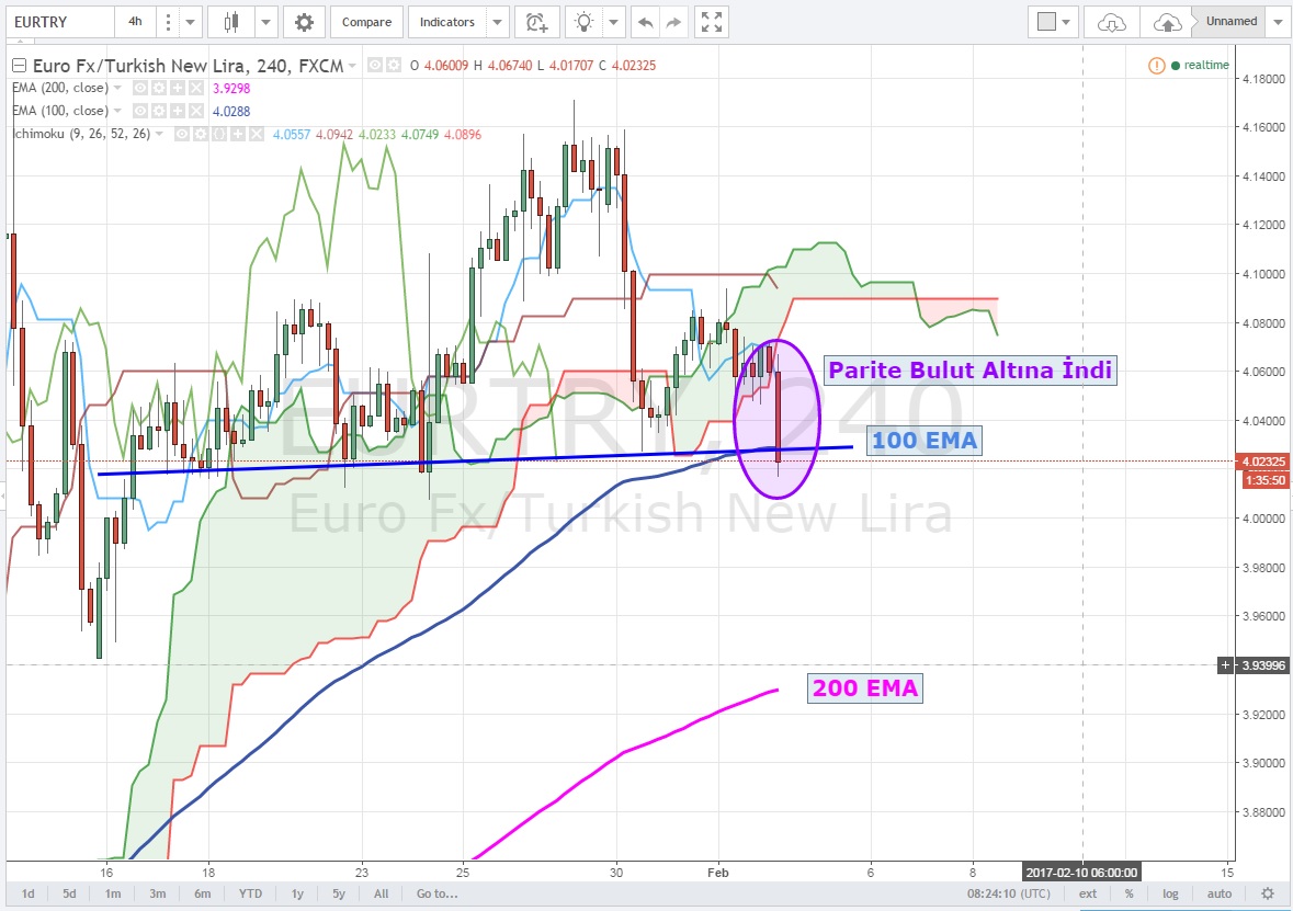 EURTRY yine kısa vadeye indiğimizde paritenin bulut altına inmesi dikkat çekici