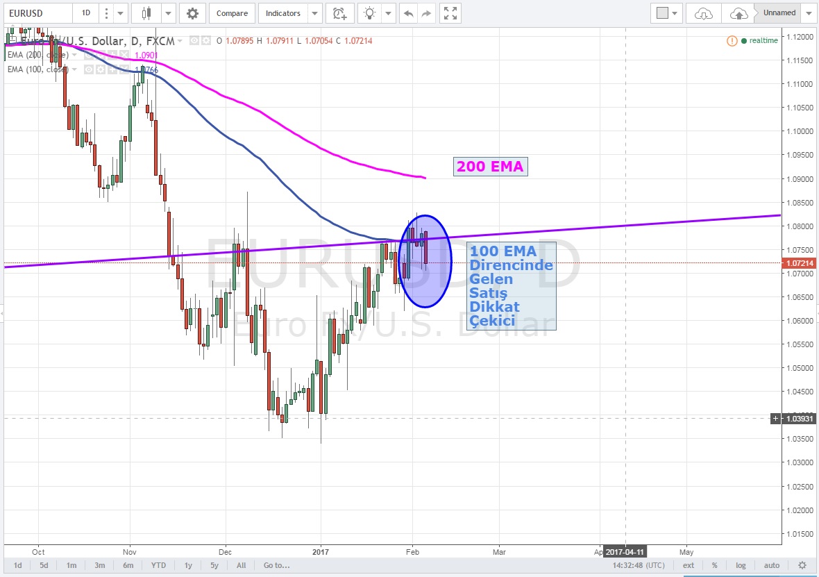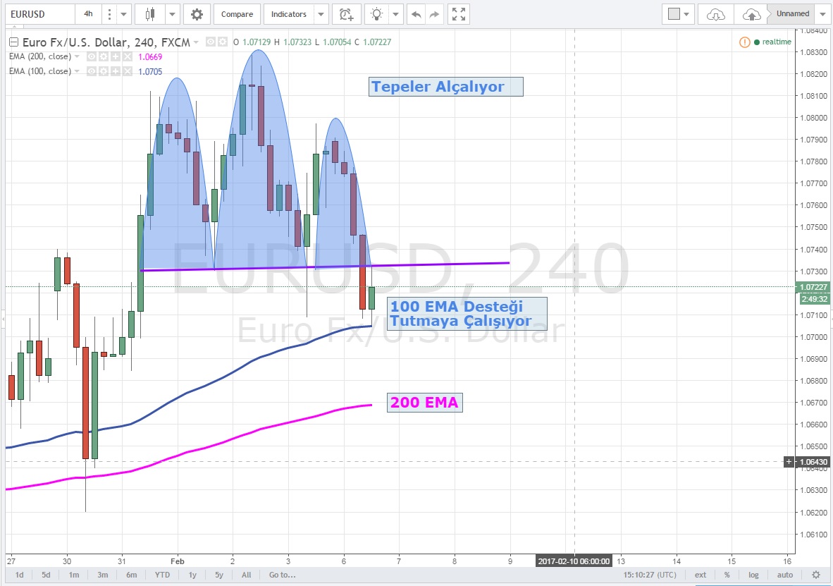 Bir üst vadeye çıktığımızda ise 1.0704 'de ki 100 EMA desteği şimdilik tutsa da bu seviyenin tekrar denenerek aşağı kırılmasının satışları ivmelendirmesini beklerim