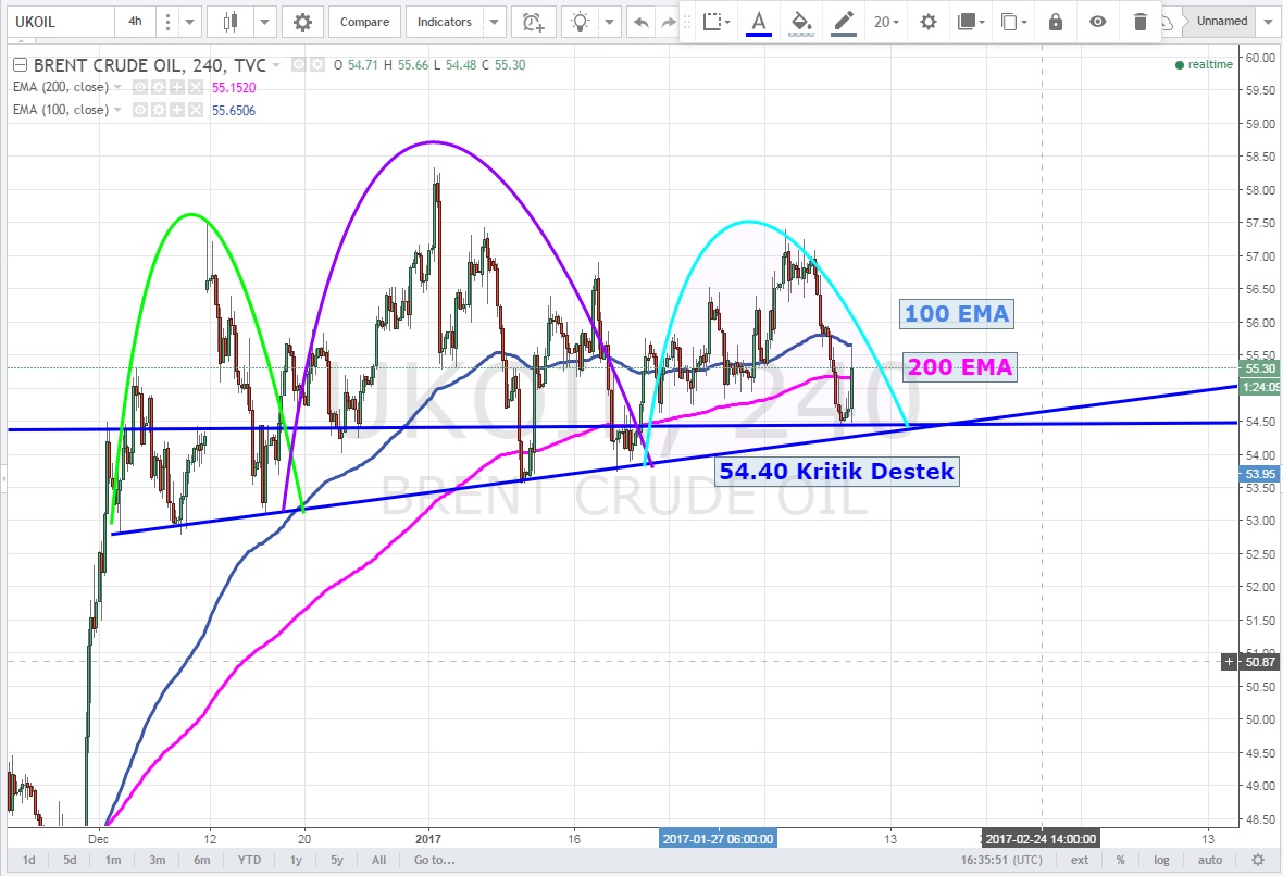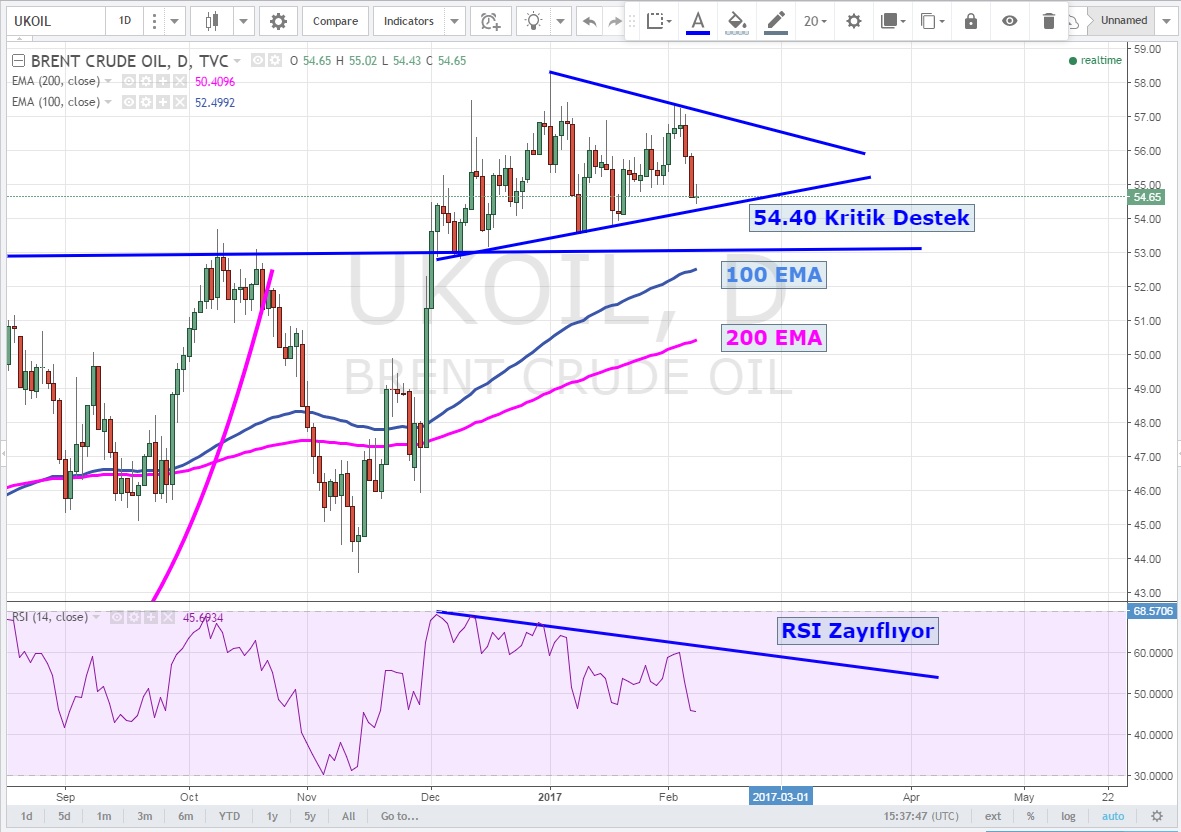 Günlük grafiklerde sıkışma alanı yaşayan emtiada 54.40 USD desteği kritik konuma gelmiş durumda