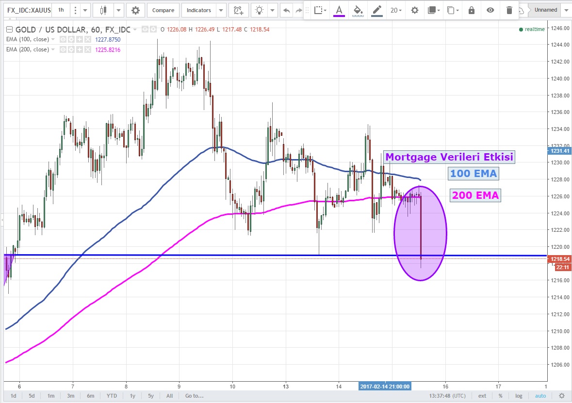 1226 USD altında kaldığı sürece XAUUSD günlük grafiklerde ihtiyacı olan düzeltme için katalizörü bulmuş gibi