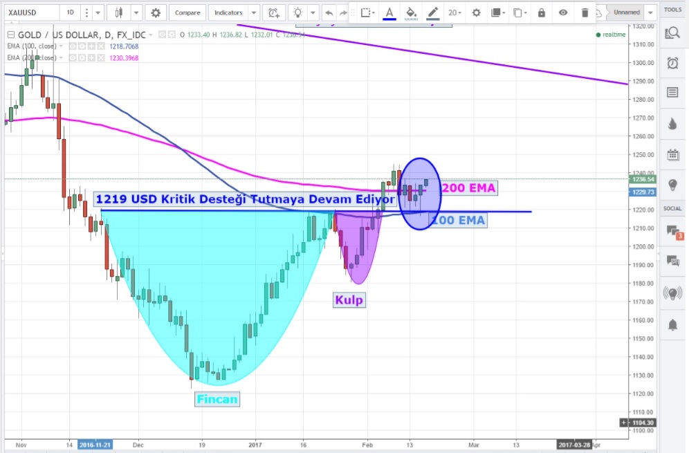 Kısa vadeye indiğimizde ise 1235 USD direncini kırmaya çalışan boğaların bu seviye üzerinde kalıcı olduğu durumda ilk olarak 1250 USD 'ye kadar hareketi sürdürmesini bekliyorum