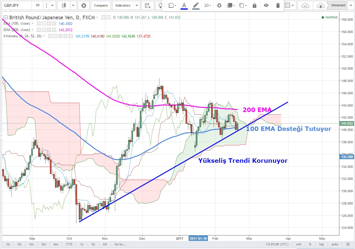Günlük grafiklerde geçtiğimiz hafta beklentileri karşılayamayan İngiltere verilerine rağmen 100 EMA desteğinin tuttuğunu görüyoruz