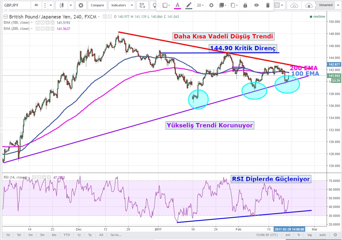 GBPJPY 'de dipte oluşan yükseliş trendi ve makro senaryoda GBP 'nin güçleniyor olması yükselişi destekliyor