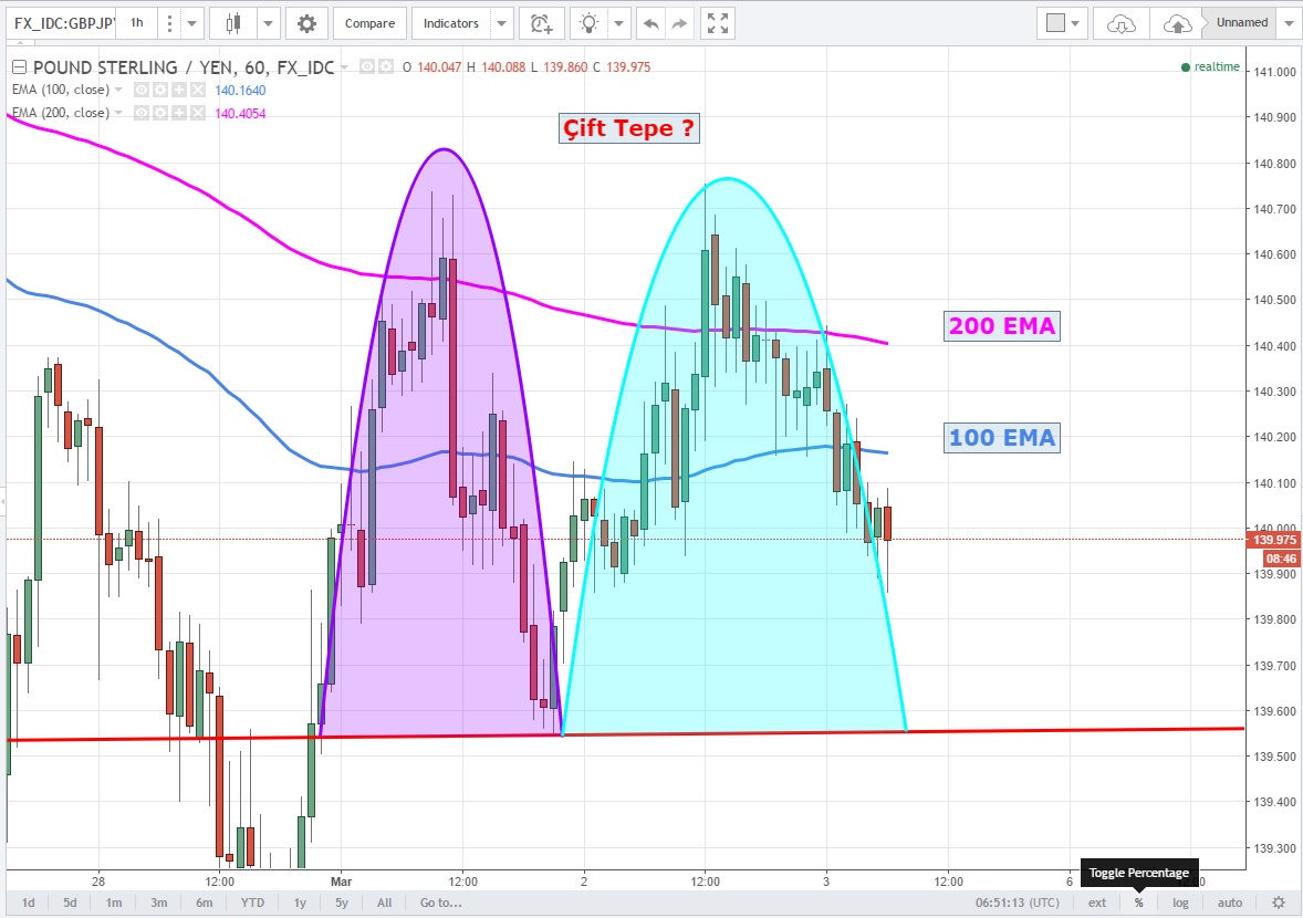 Yine kısa vadede 139.50 desteğinin kırılması potansiyel çift tepe formasyonunu harekete geçirerek daha düşüklerin görülmesini sağlayabilir