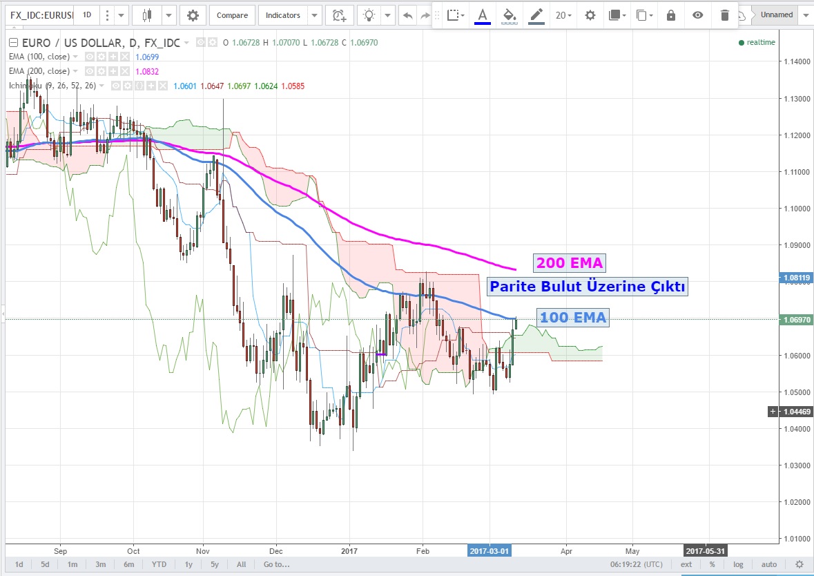 Yine günlük grafiklerde Ichi Moku bulutu üzerine çıkan paritede