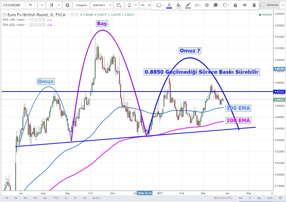 Günlük grafiklerde 0.8850 geçilmediği sürece baskının sürmesini ve yükselişlerin satış fırsatı olarak değerlendirilebileceğini düşünüyorum