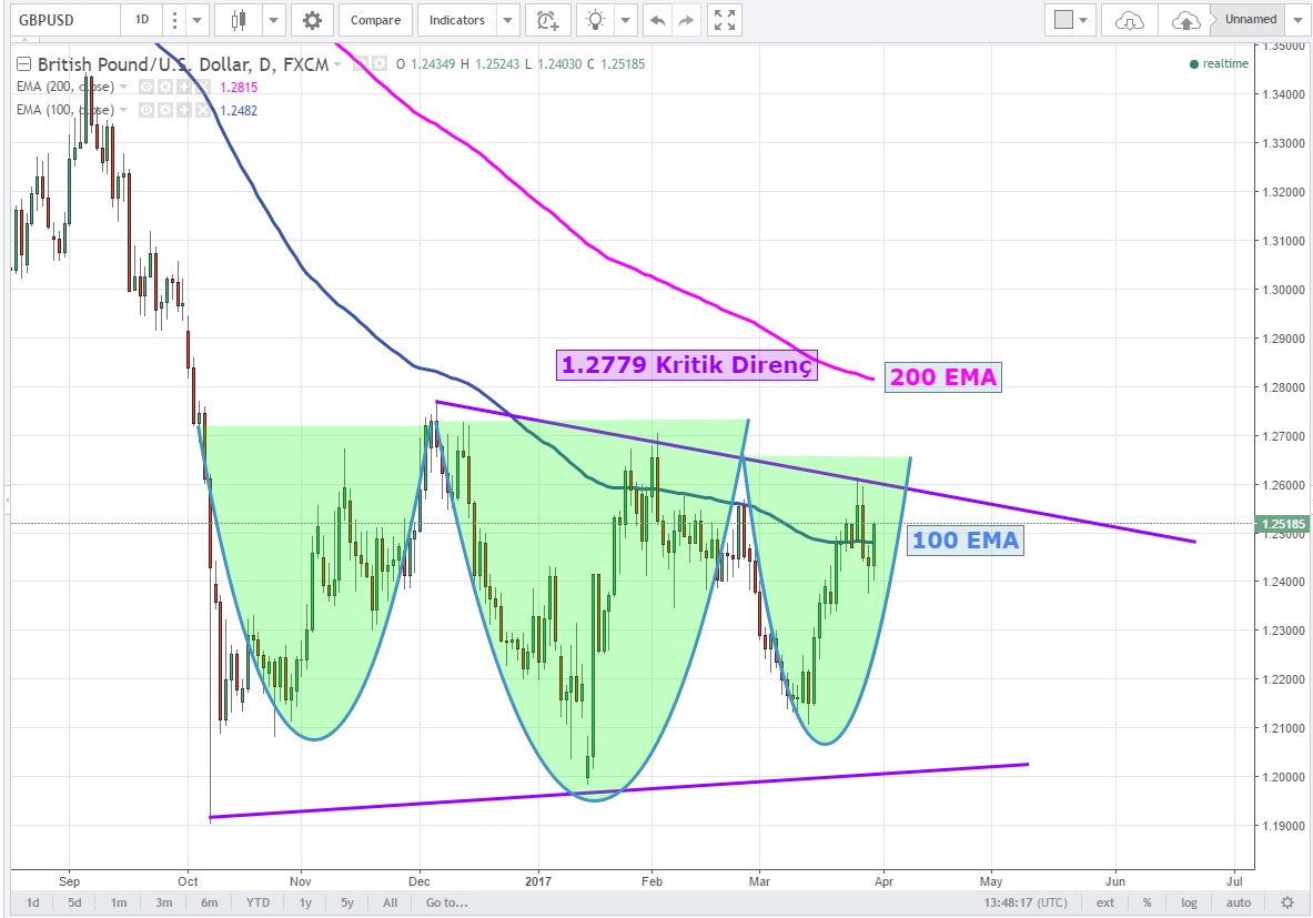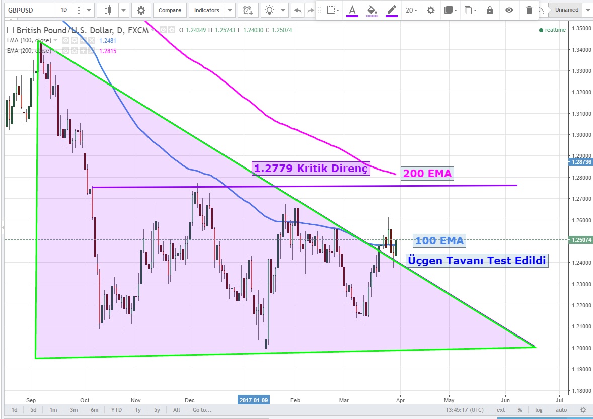 Günlük grafiklerde üçgen formasyonunu kırdıktan sonra dün tavanı test eden Cable boğalarının buradan tekrar güç kazandığını görüyoruz