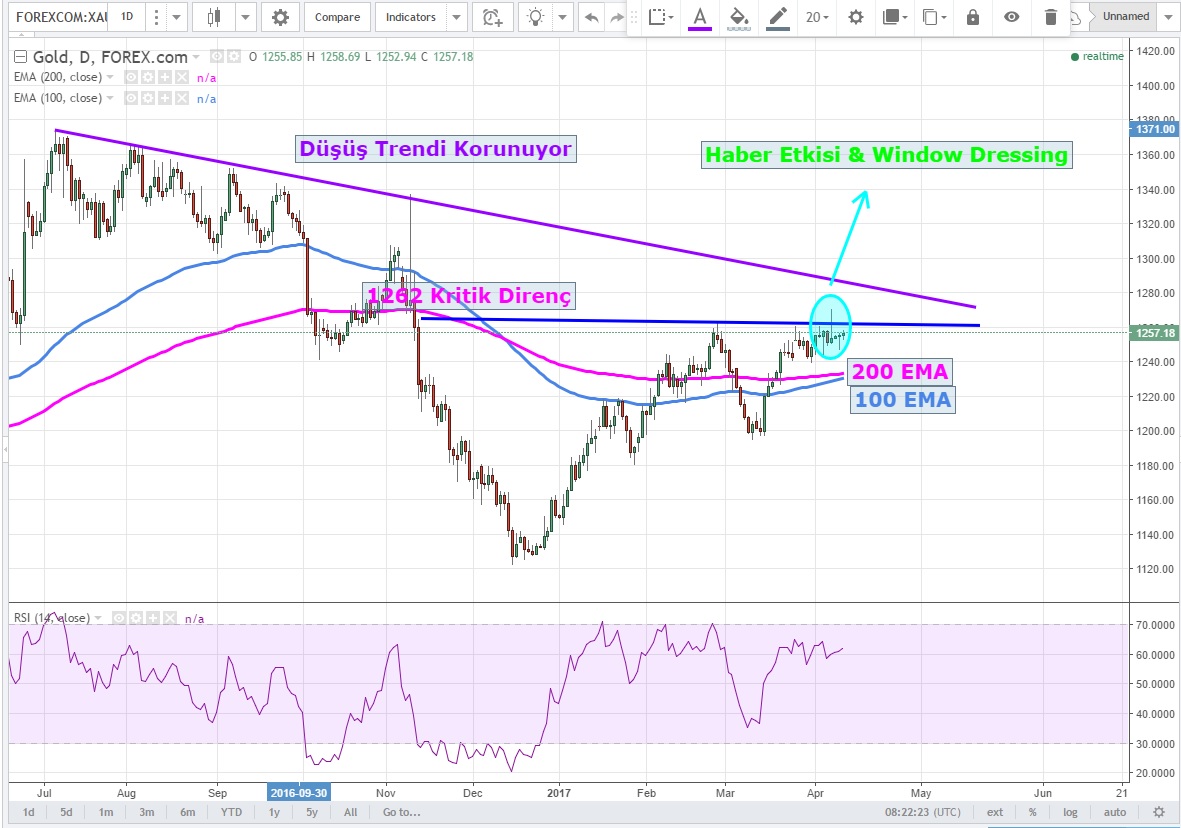 Kısa vadede ise 1262 USD üzerine attıktan sonra yükseliş kanalı takip edilebilir