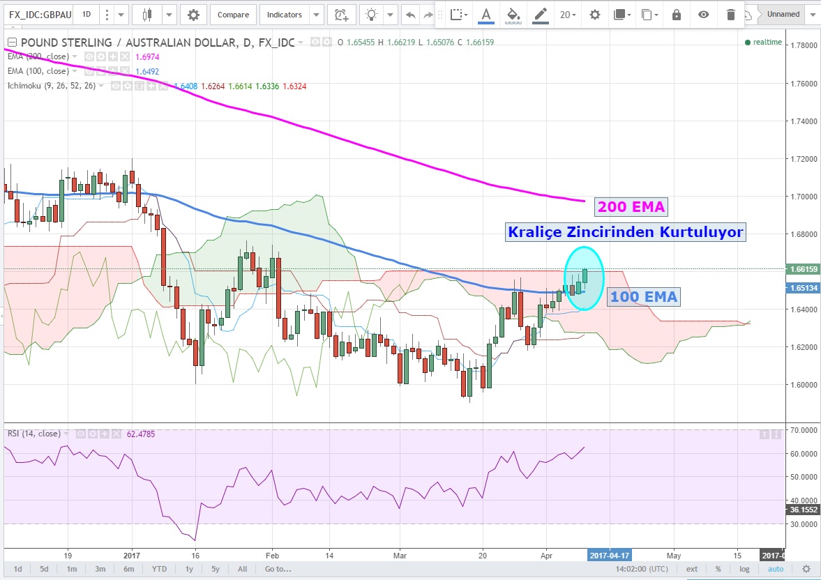 Ichi Moku bulutunu delmeye başlayan parite 100 EMA 'yı da bugün destek yapıyor görüntüsünde