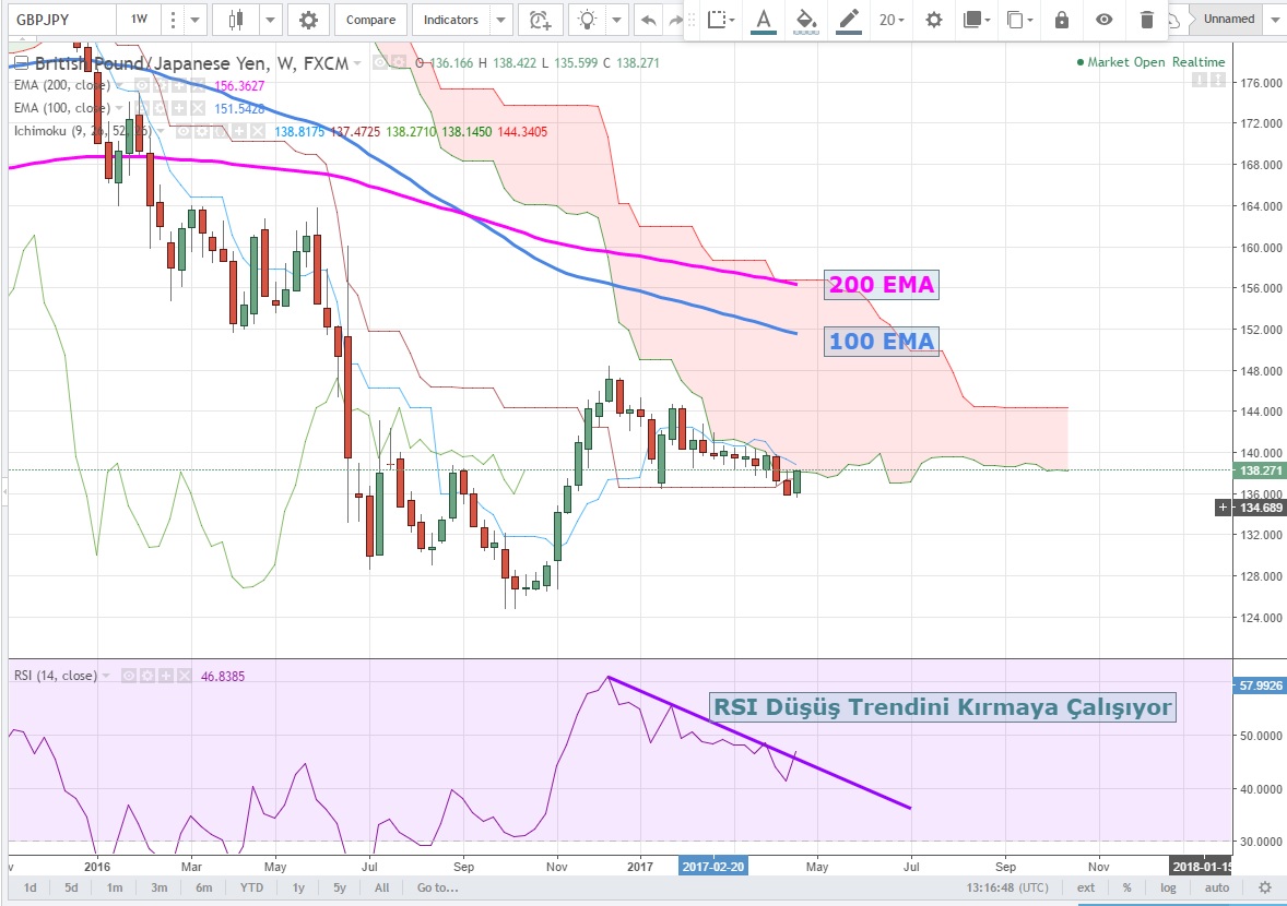 Yine haftalık grafiklerde RSI düşüş trendini kırmaya çalışıyor. Bu hafta kapanış belirleyici olacaktır