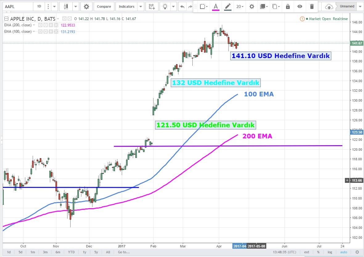 Apple için konuştuğumuz 121.50, 132 ve 141.10 USD hedeflerinin hepsine vardık https://www.tradeall.com/teknik-analiz-detay/2932/apple---elma-olgun-kalmaya-devam-ediyor-