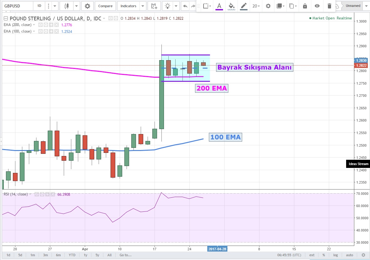 Bayrak formasyonu yukarı yönlü kırıldığında 1.2870