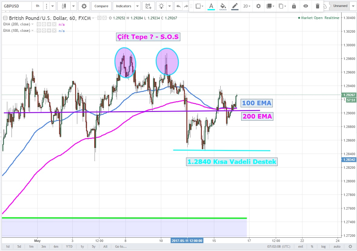 An itibari ile 1.2920 seviyesinden fyatlanan paritede genel görünüme baktığımızda