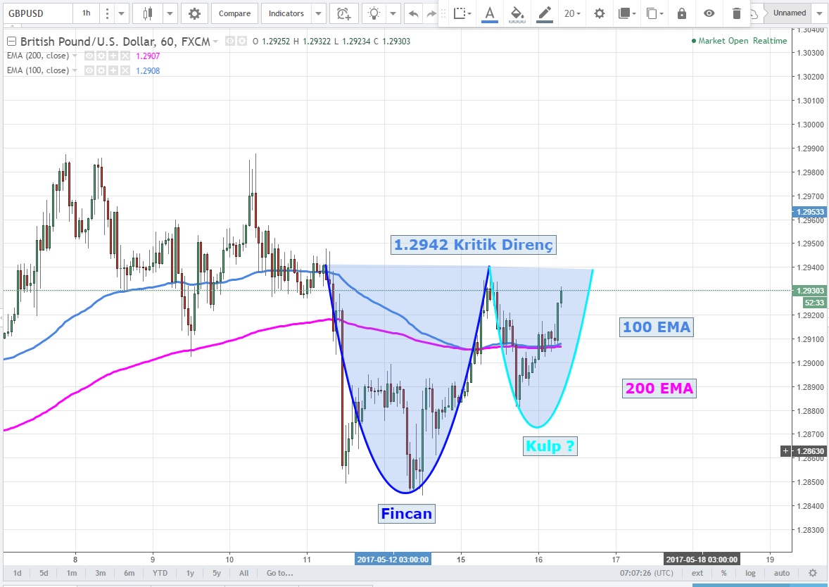 Daha kısa vadede fincan kulp oluşturan Cable, 1.2942'yi geçtiğinde formasyonu tamamlayacak ve sırası ile