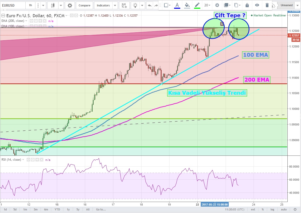 Daha kısa vadede ise yükseliş trendi test edilmek üzere ve oluşan çift tepe dikkat çekici