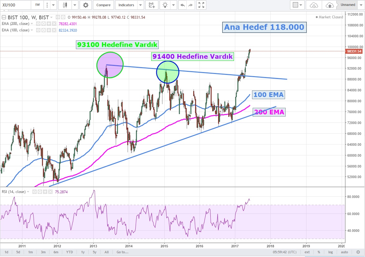 93100 ve 94400 hedeflerine varan endekste ana hedef olan 118.000 beklentimi korurken