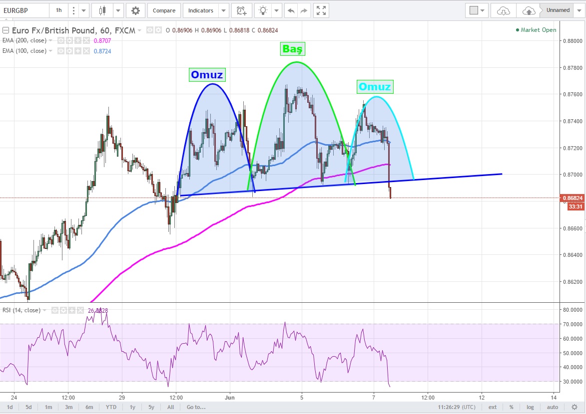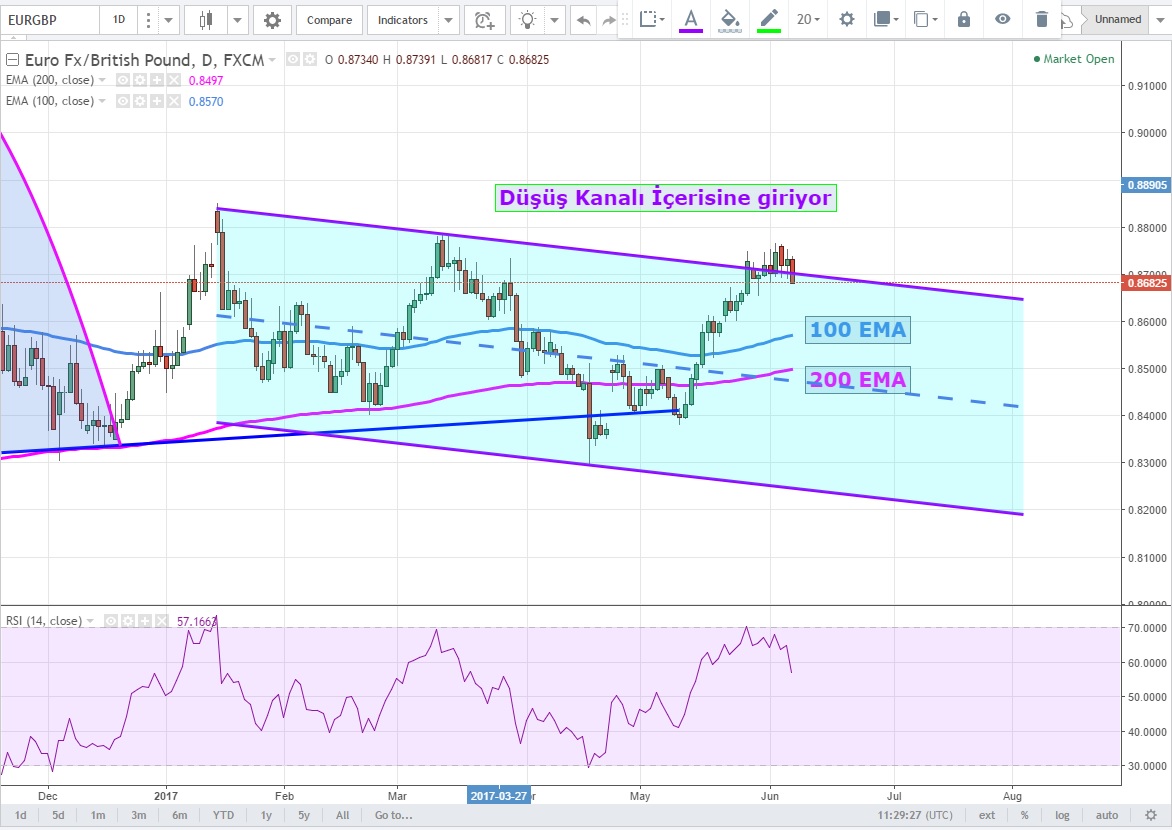 Yarın yapılacak ECB ve İngiltere seçimleri öncesi ECB 'nin enflasyon beklentisini 2019 yılına kadar düşürmesi ile satış başlayan EURGBP Futures Haziran vadeli kontratlarında