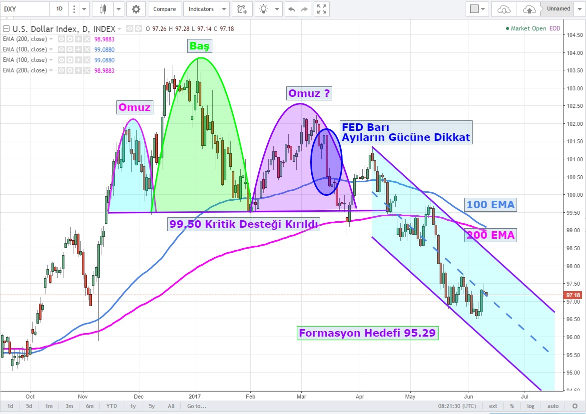 Dolar endeksinde grafikte gösterdiğim OBO hedefi 95.29 olarak öne çıkıyor