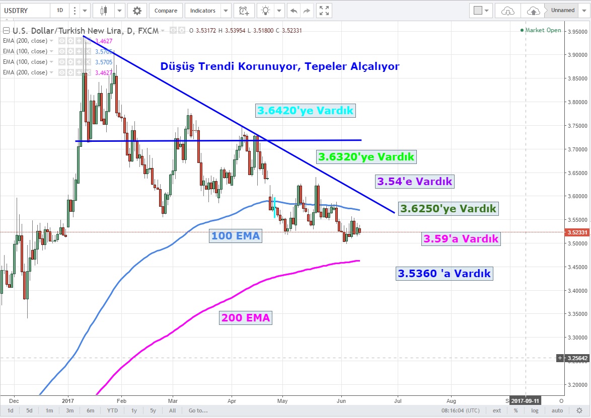 USDTRY 'ye teknik olarak bakarsak düşüş trendi korunduğu sürece TRY güçlü kalmaya devam edecektir