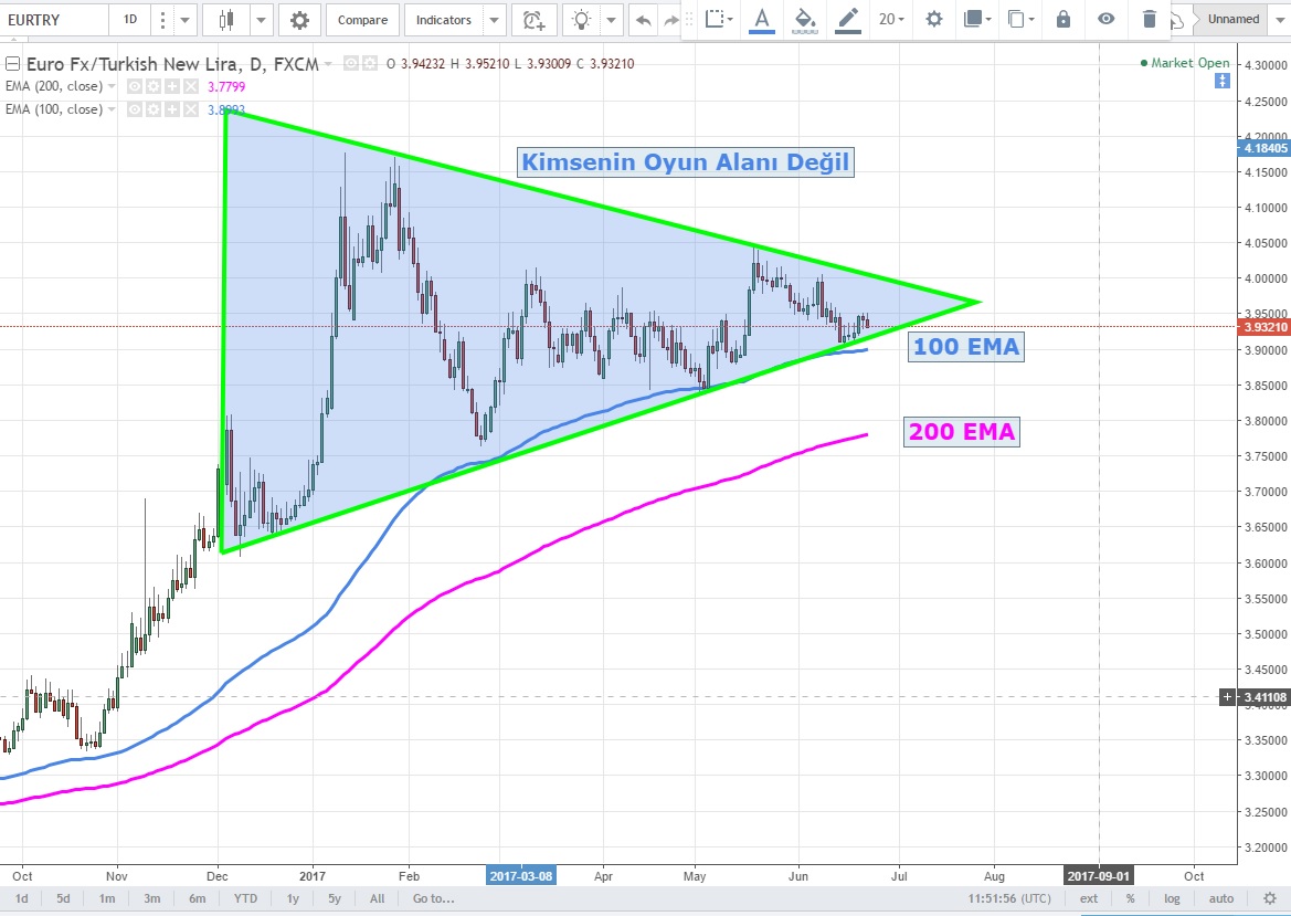 Yine günlük grafiklerde büyük bir üçgen sıkışması oluşan parite aslında şu an için kimsenin oyun alanında görülmese de alt tabanın sınırlarında dolaşıyoruz