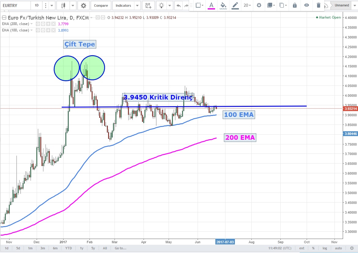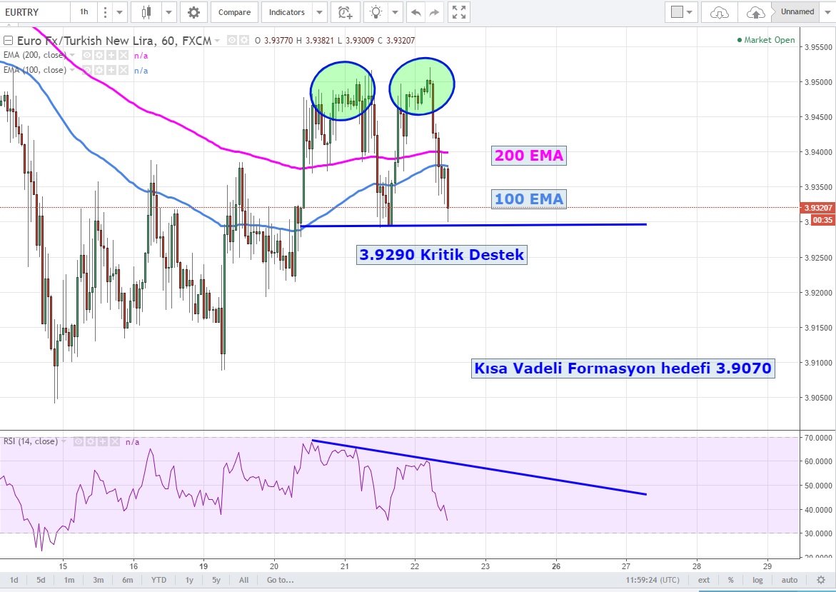 EURTRY 'de kısa vadede 3.9290 desteği kırıldığında 3.9070 seviyelerine hızlı bir düşüş görebiliriz