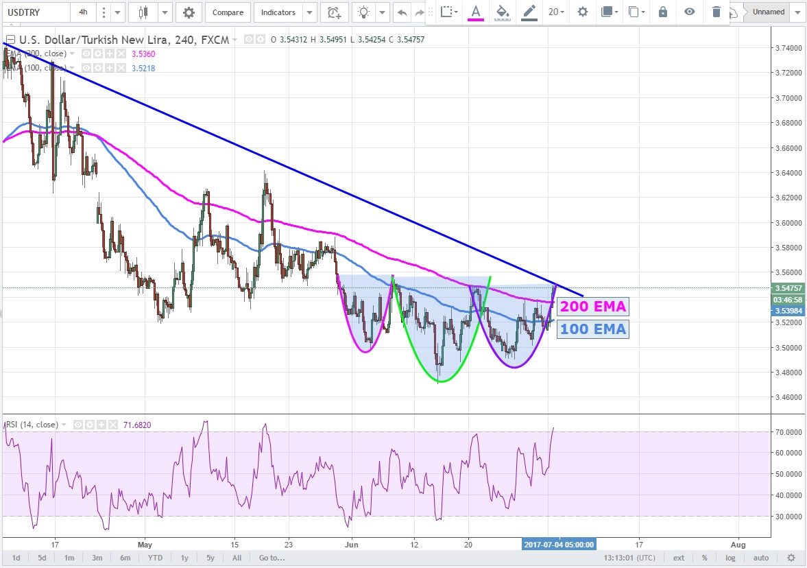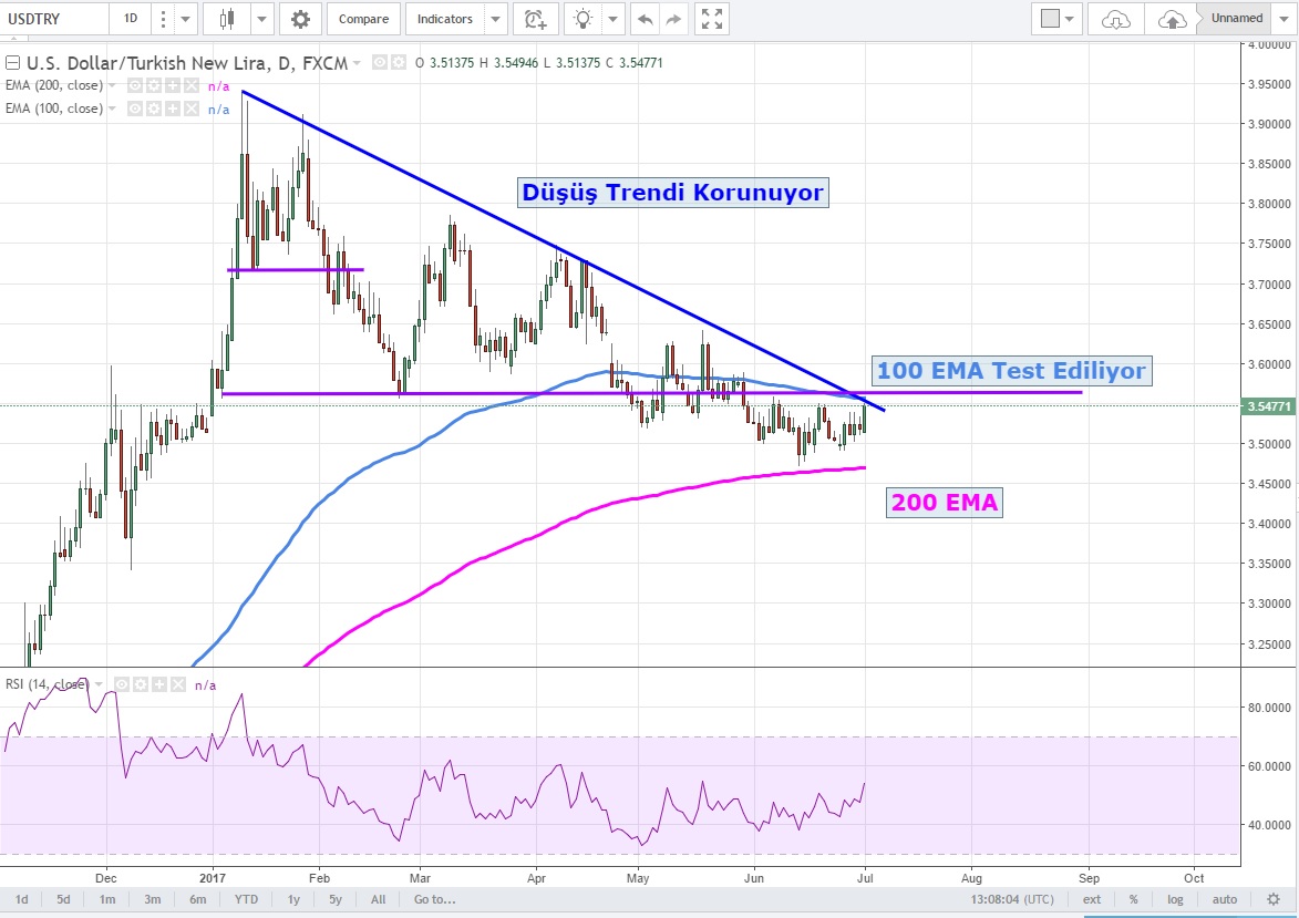 Günlük grafiklerde düşüş trendinin halen korunuyor olması TRY 'nin gücünü koruduğuna,