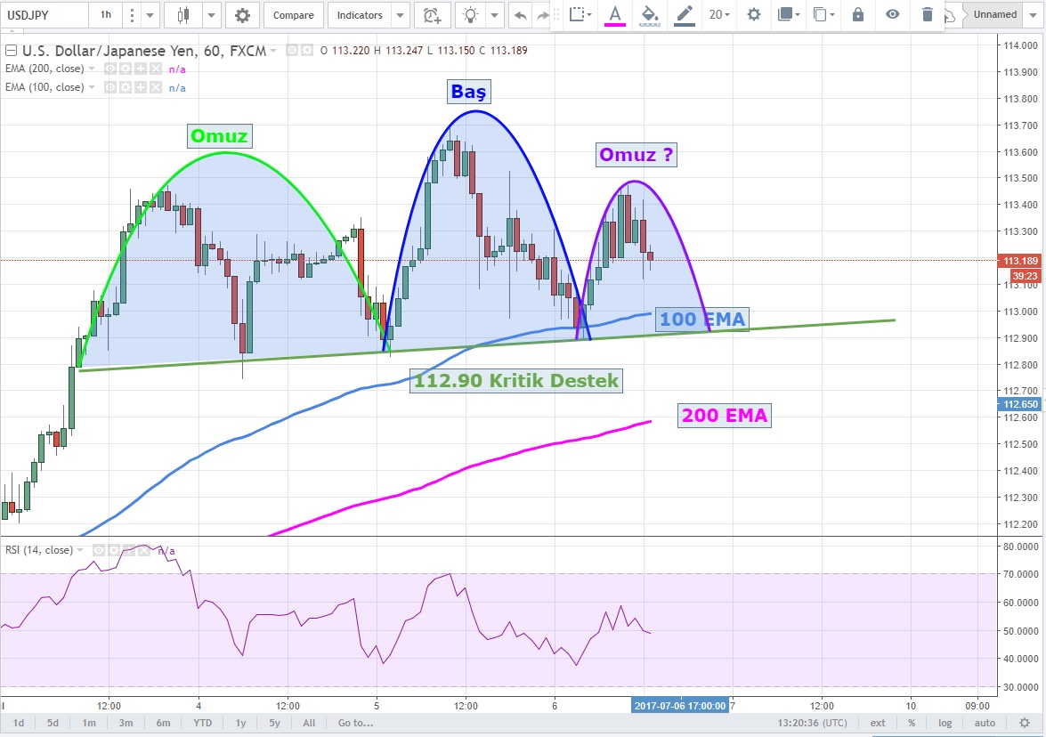 Burada da saatlik grafikelrde ise dipte sağ omzunu oluşturmaya çalışan TOBO formasyonu mevcut