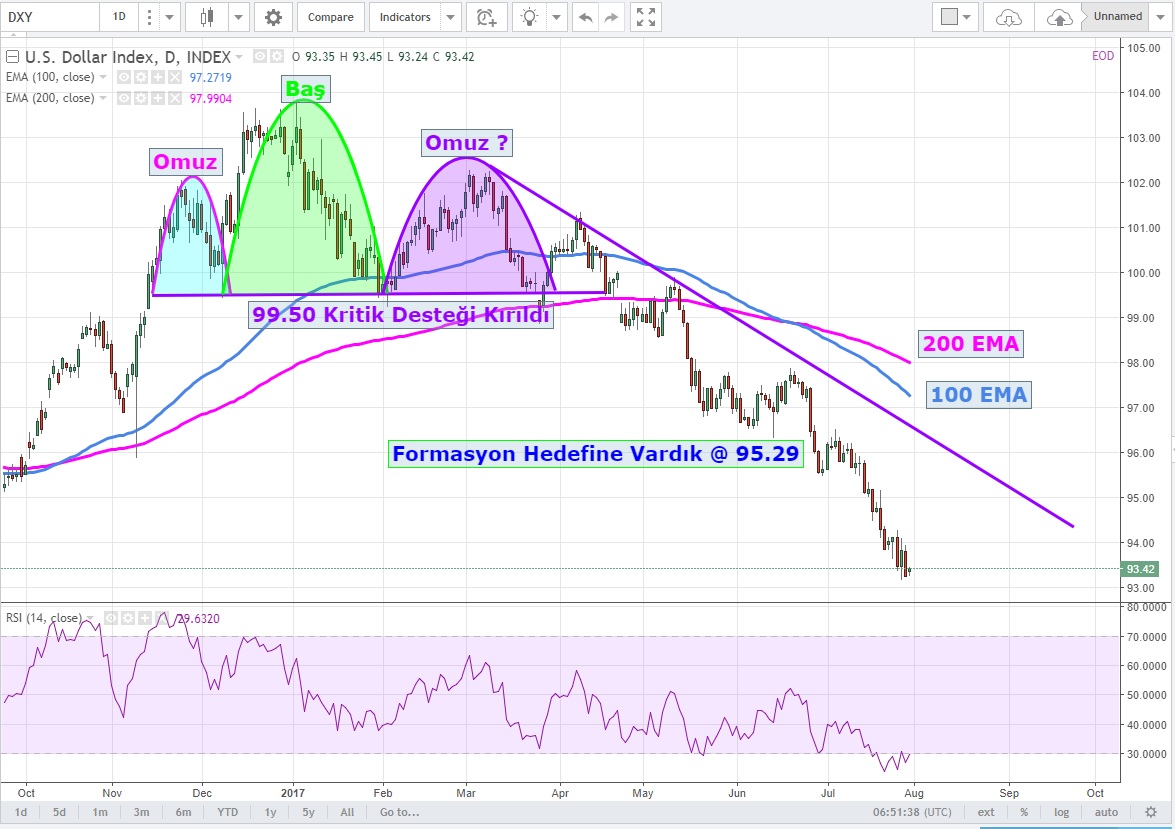 99.50 seviyesinde potantasiyel düşüşe hazırlandığını konuştuğumuz Dolar Endeksi
