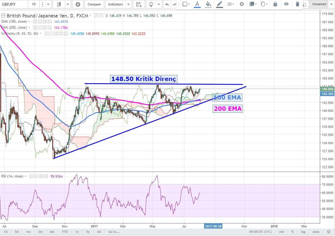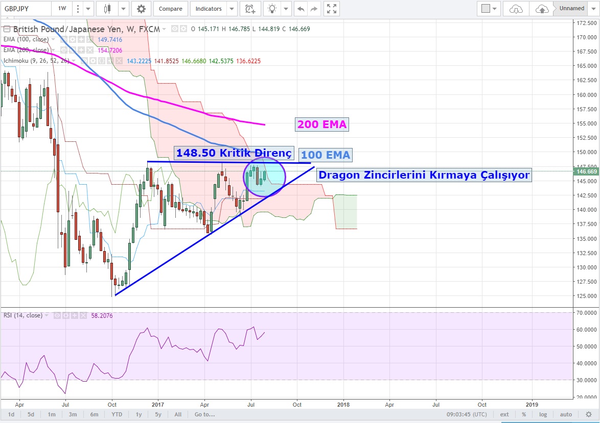 Haftalık grafiklerde bulut direncine dayanan partienin önündeki en büyük engel 148.50 direnci
