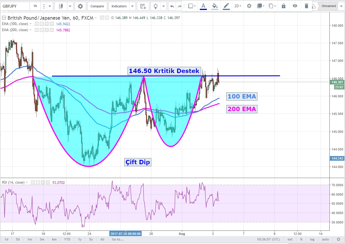 Daha kısa vadede ise 146.50 seviyesi kritik direnç ve kırılması ile çift dip formasyonu tamamlanarak bizi