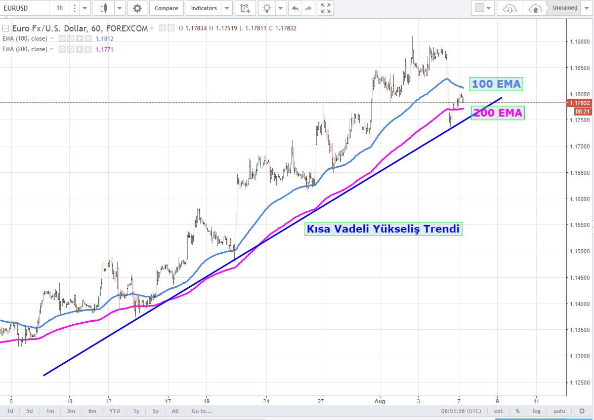 Saatlik grafiklerde indiğimizde Cuma günü gelen TDİ verisi ile birlikte satış yiyen paritenin yükseliş trendini tuttuğnu görüyoruz