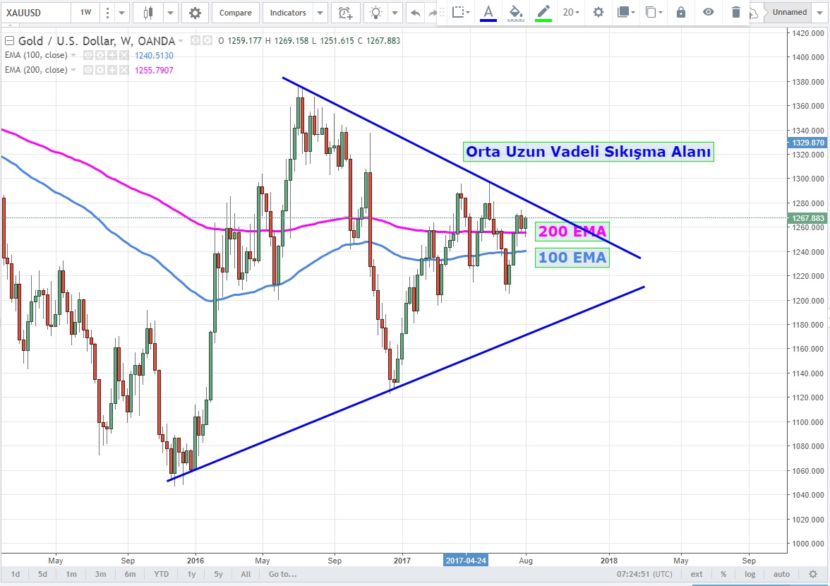 Orta uzun vadede sıkışma alanında hareketine devam eden XAUUSD