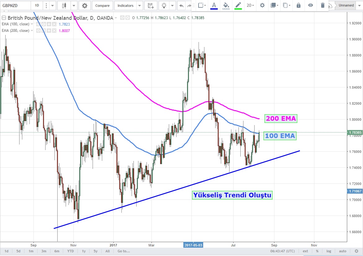 Günlük grafiklerde dipte yükseliş trendi oluşturan parite