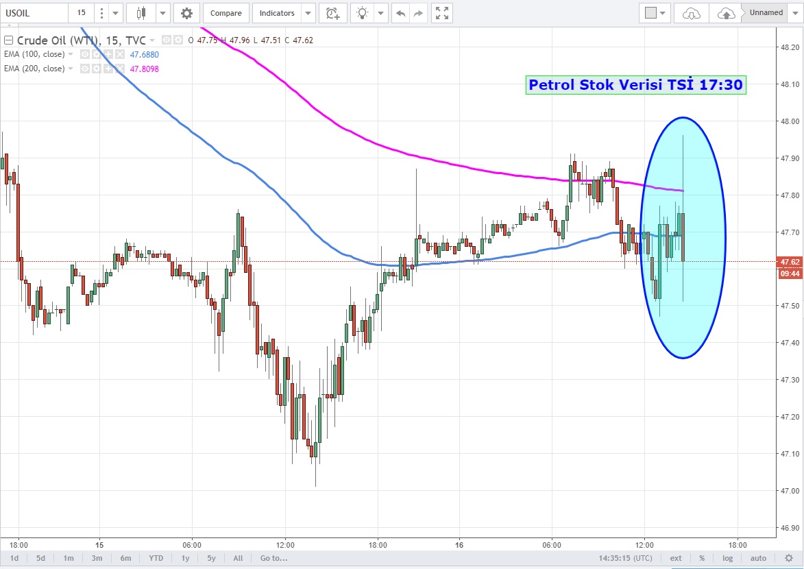 TSİ 17:30 'da ABD 'den gelen ham petrol stokları 3. hafta üstüste yine beklentilerden fazla azaldı (-8.945 M vs - 3.058M)