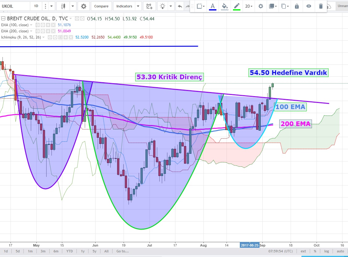 53 USD üzeri kapanışlar olduğu sürece hareket güçlü kalmaya devam edecektir ve 55.70 seviyesine yükseliş ihtimali devam edecektir