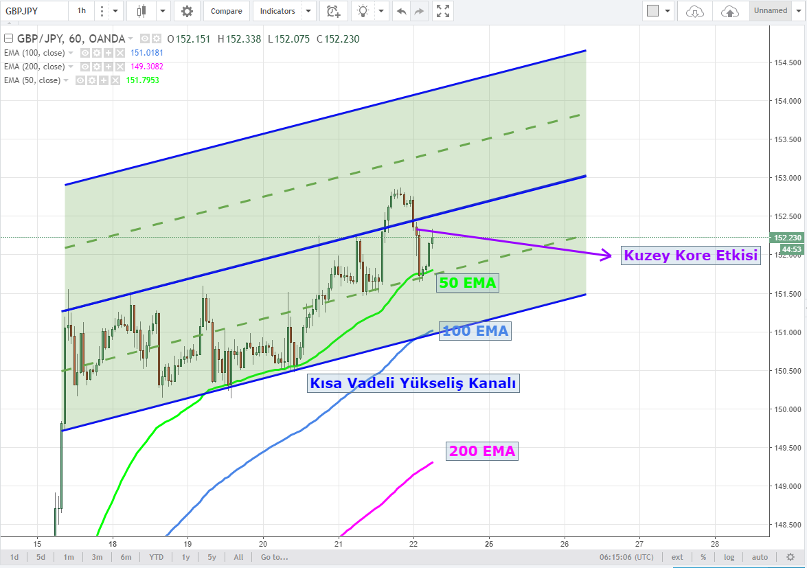 50 EMA 'dan destek bulan parite tekrar 152 seviyesi üzerine atmış durumda