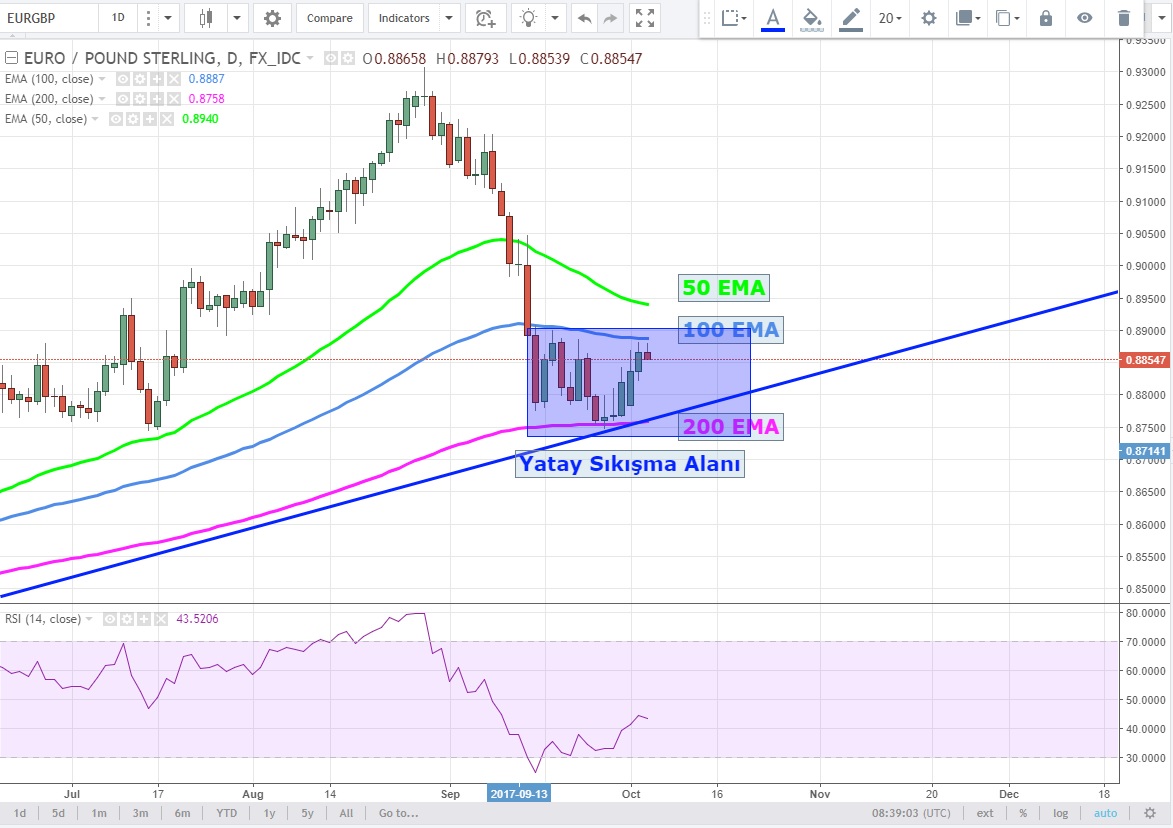 Günlük grafiklerde ise 100 EMA direncine dayanan parite yatay sıkışma alanında ilerliyor