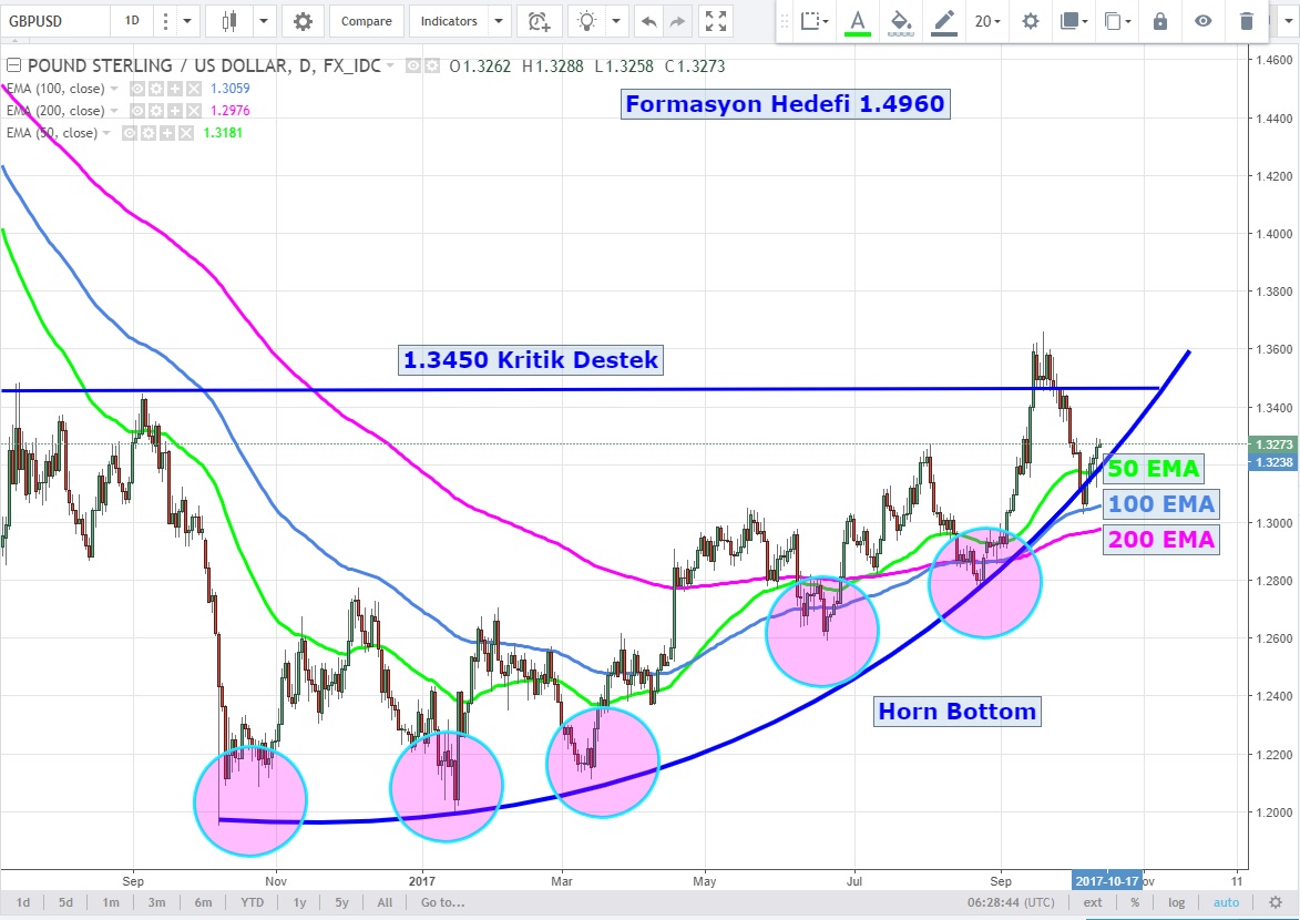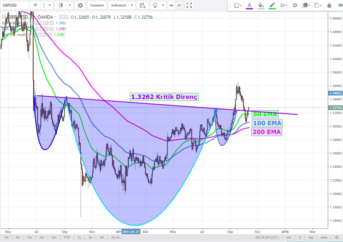 Bununla birlikte geçilen 1.3262 direnci ile daha önce konuştuğumuz teknik formasyon oluşmaya başladı