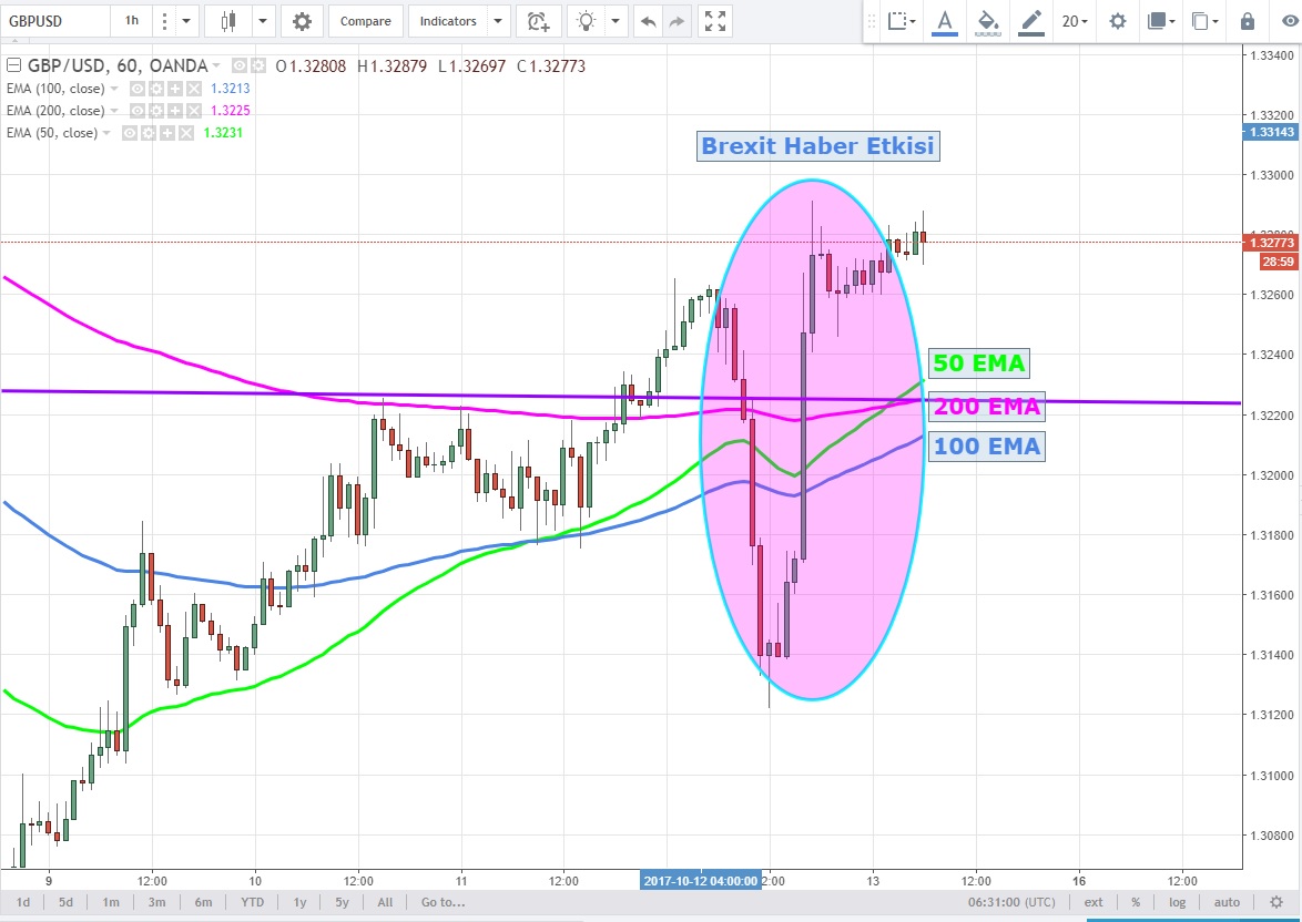 Saatlik grafiklerdeki Brexit haber etkisi ise