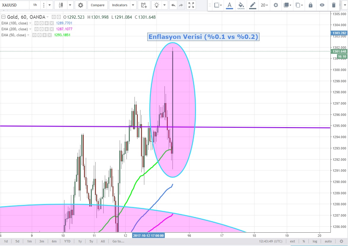 XAUUSD Futures veri ile birlikte beklediğimiz kritik 1297 USD direncini aşıyor