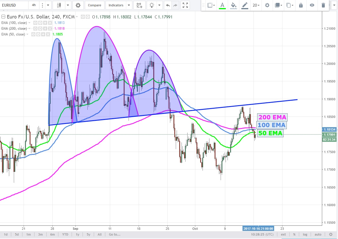 Daha kısa vadede ise OBO oluşturduktan sonra düşmeye başlayan parite için 50 100 ve 200 EMA direnç konumunda