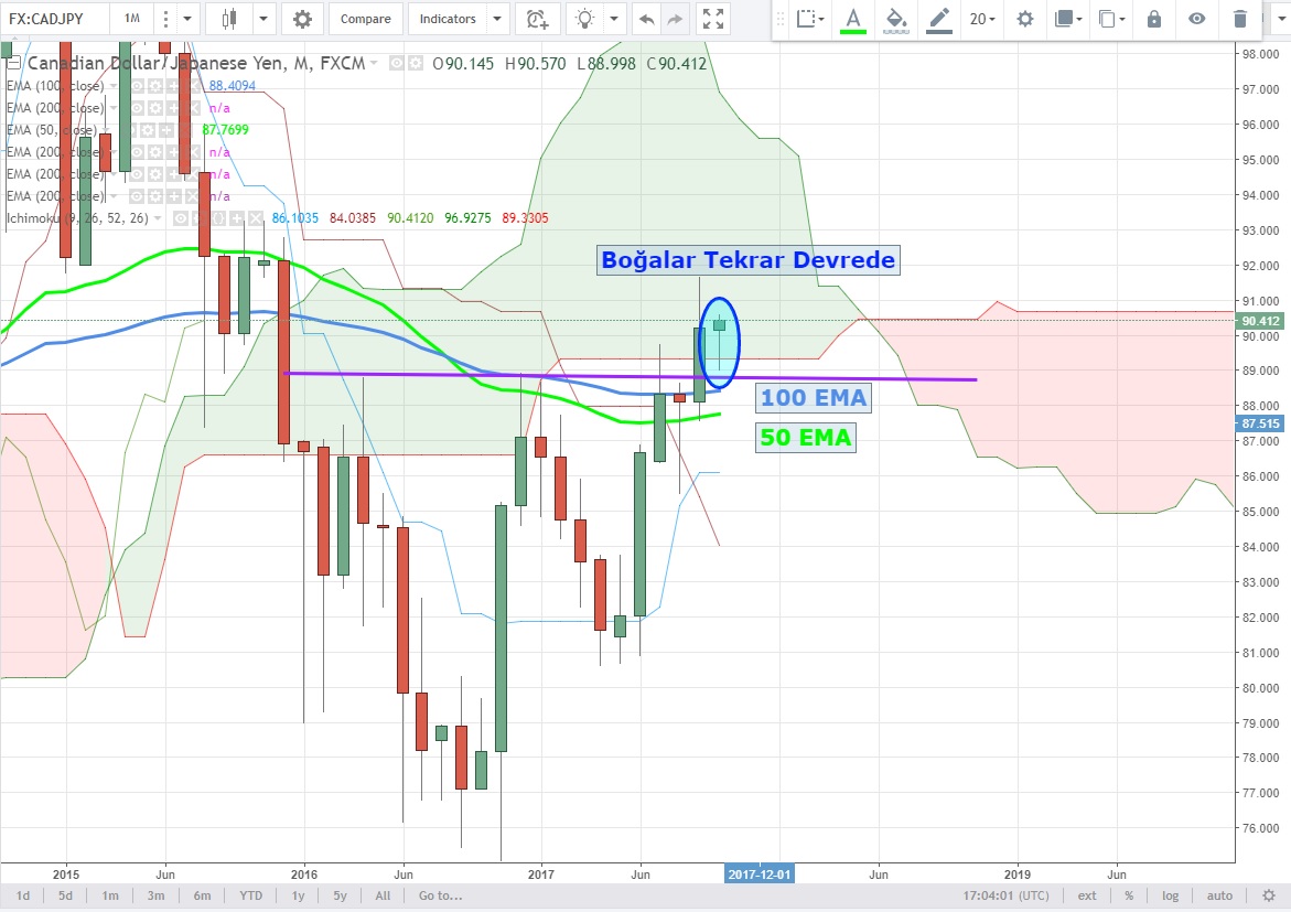 Daha önce konuştuğumuz ve 91.20 hedefine vardığımız CADJPY Futures aktif vadeli paritesinde boğalar oyuna dönüyor