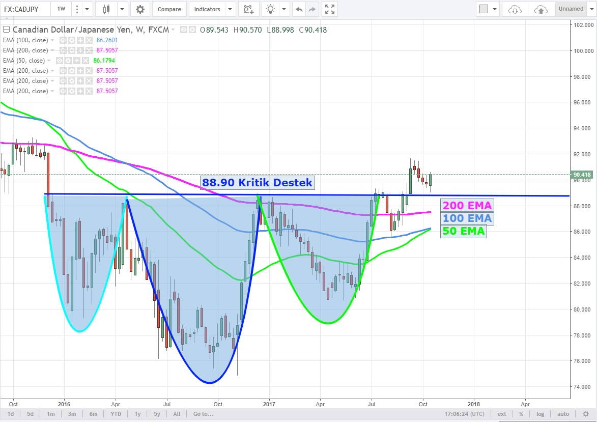 Haftalık grafiklerde Ters OBO formasyonunu tamamlayan parite için 88.90 desteği önemli