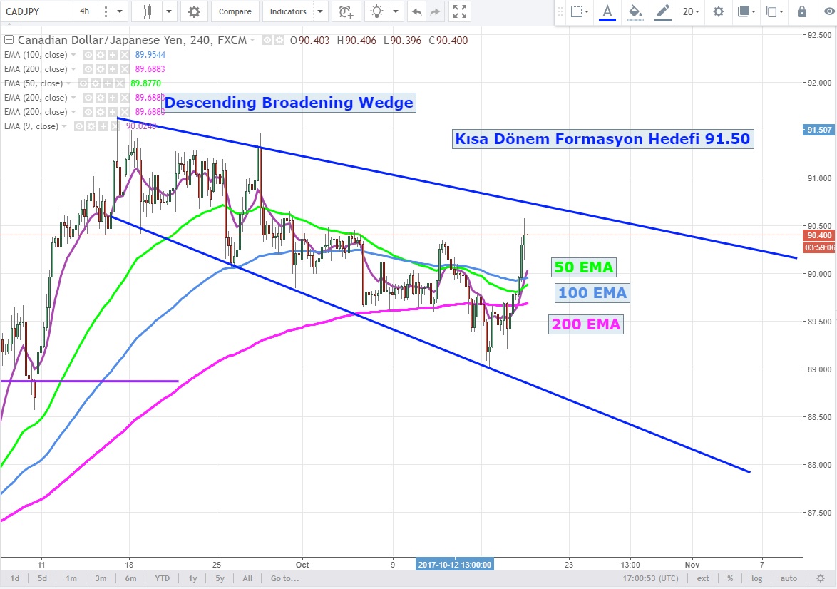 Daha kısa vadede ise Descending Broadening Wedge oluşturan parite için 91.72 seviyesi kırıldığında 91.50 seviyesine yükselişler beklerim