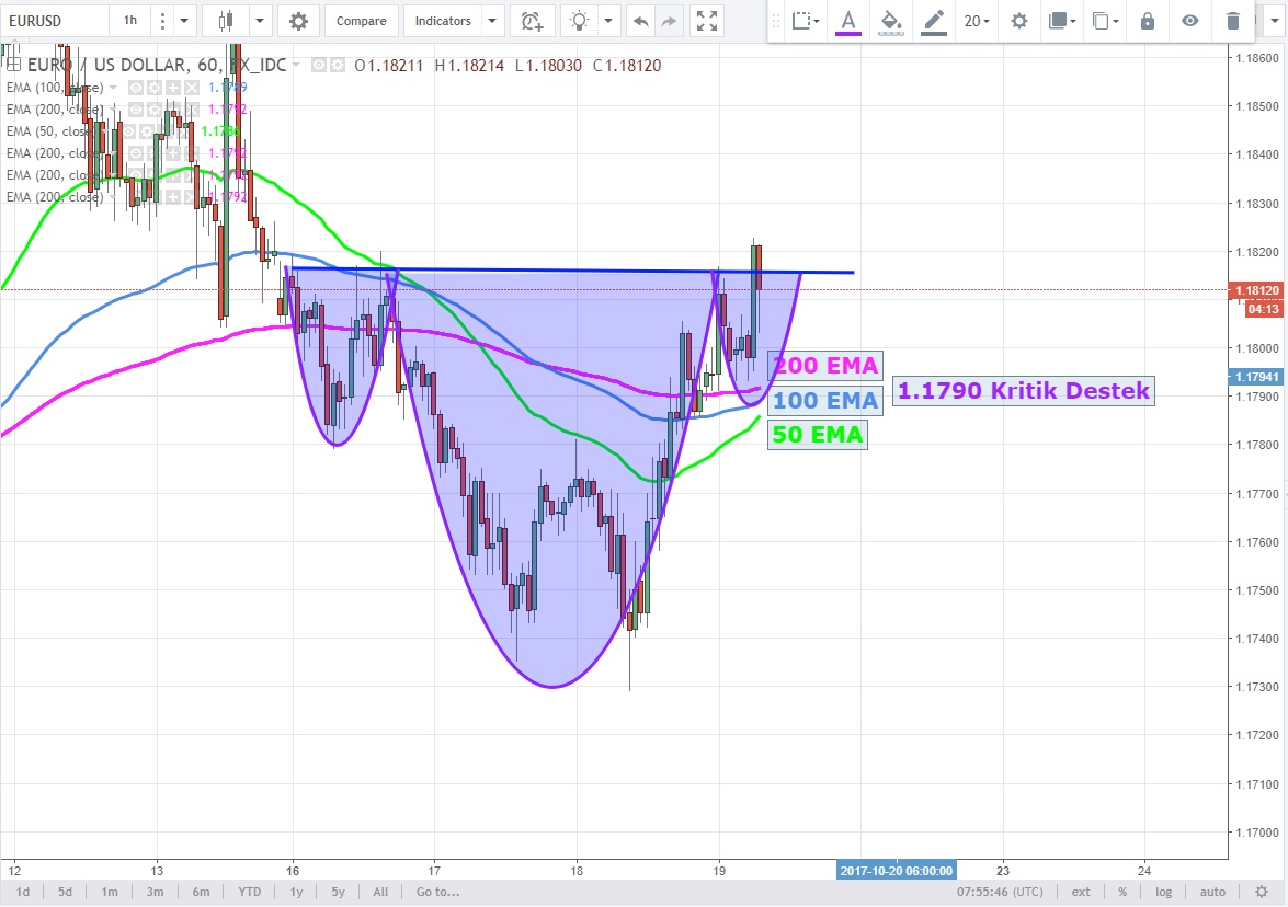 Saatlik grafiklerde oluşturduğu TOBO 'nun 1.1790 altına sarkması ile false break out oluşturacak paritede kısa vadede sırası ile