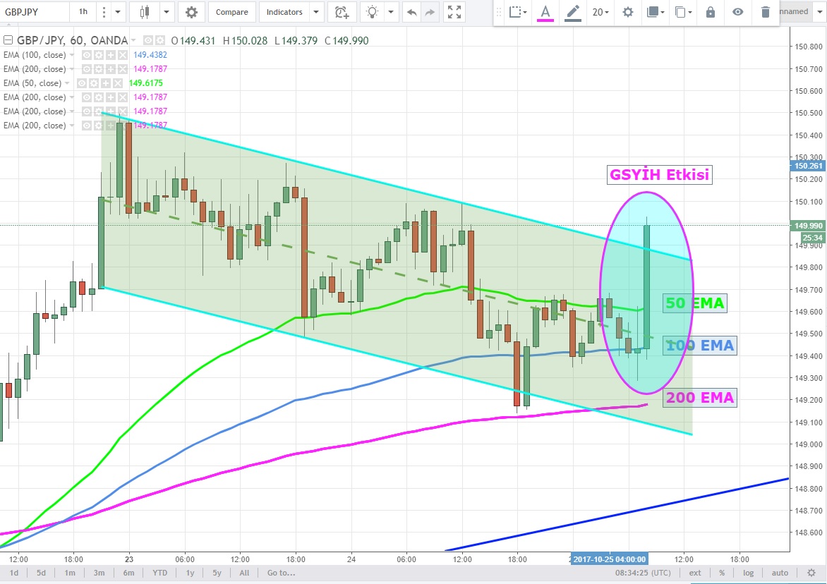 Haber ile birlikte Sterlin olumlu etkilenirken GBPJPY aktif vadeli Futures kontratlar 150 seviyesine yükseldi