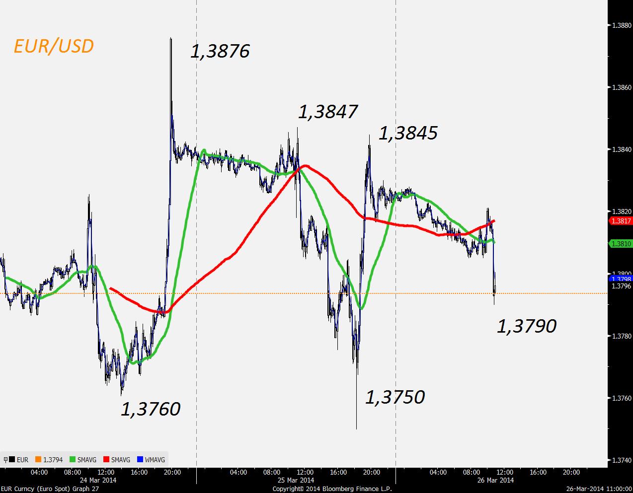 Euro 1,38 üzerinde sallanmaya başladı. Dün deflasyondan bahseden güvercin Makuch ve QE de mümkün diyen müzmin şahin Alman MB Başkanı Weidmann sonrasında http://online.wsj.com/news/articles/SB10001424052702303725404579461191077796078?mg=reno64-wsj&url=http%3A%2F%2Fonline.wsj.com%2Farticle%2FSB10001424052702303725404579461191077796078.html Draghi hemen bir destek gelebilir beklentilerini öldürdü. ECB’nin acelesi olmadığını biliyoruz, son toplantı notları için http://tradeall.com/temel-analiz.aspx?id=520 .