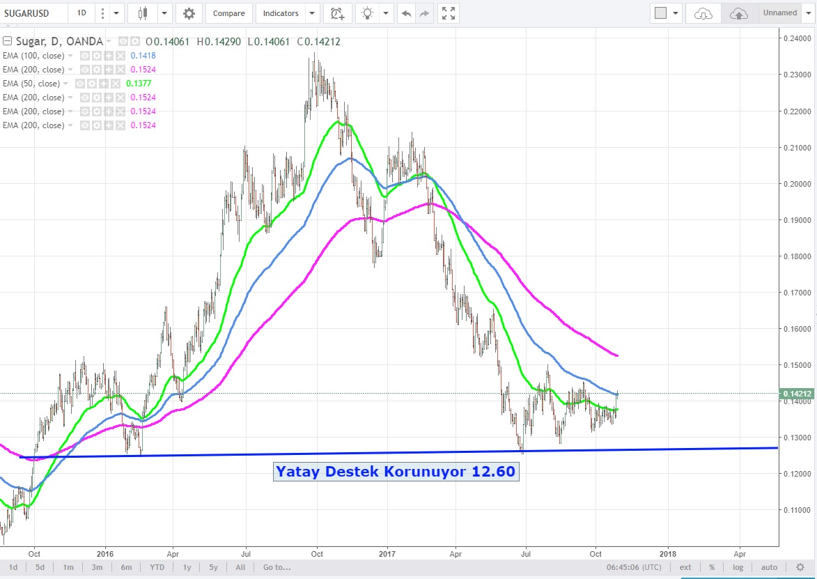 Aktif vadeli SUGARUSD Futures kontratlarda 13.20 cent üzerinde kaldığı sürece sırası ile
